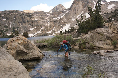Unlike Madeleine, I do not have sandals so my hiking boots are soaked, adding unwanted weight. There are a few things I would do differently - footwear for stream and water crossings being on the top of the list. Candy and salty foods the other. By now, we are horribly sick of our rations, which I packed thinking : healthy. Instead of dried apricots, honey drops and freeze dried packets, I would stuff the bear canisters with candy bars and cheese, salty salami and smoked oysters. Crackers. Anything to get away from buffalo jerky and cranberries.