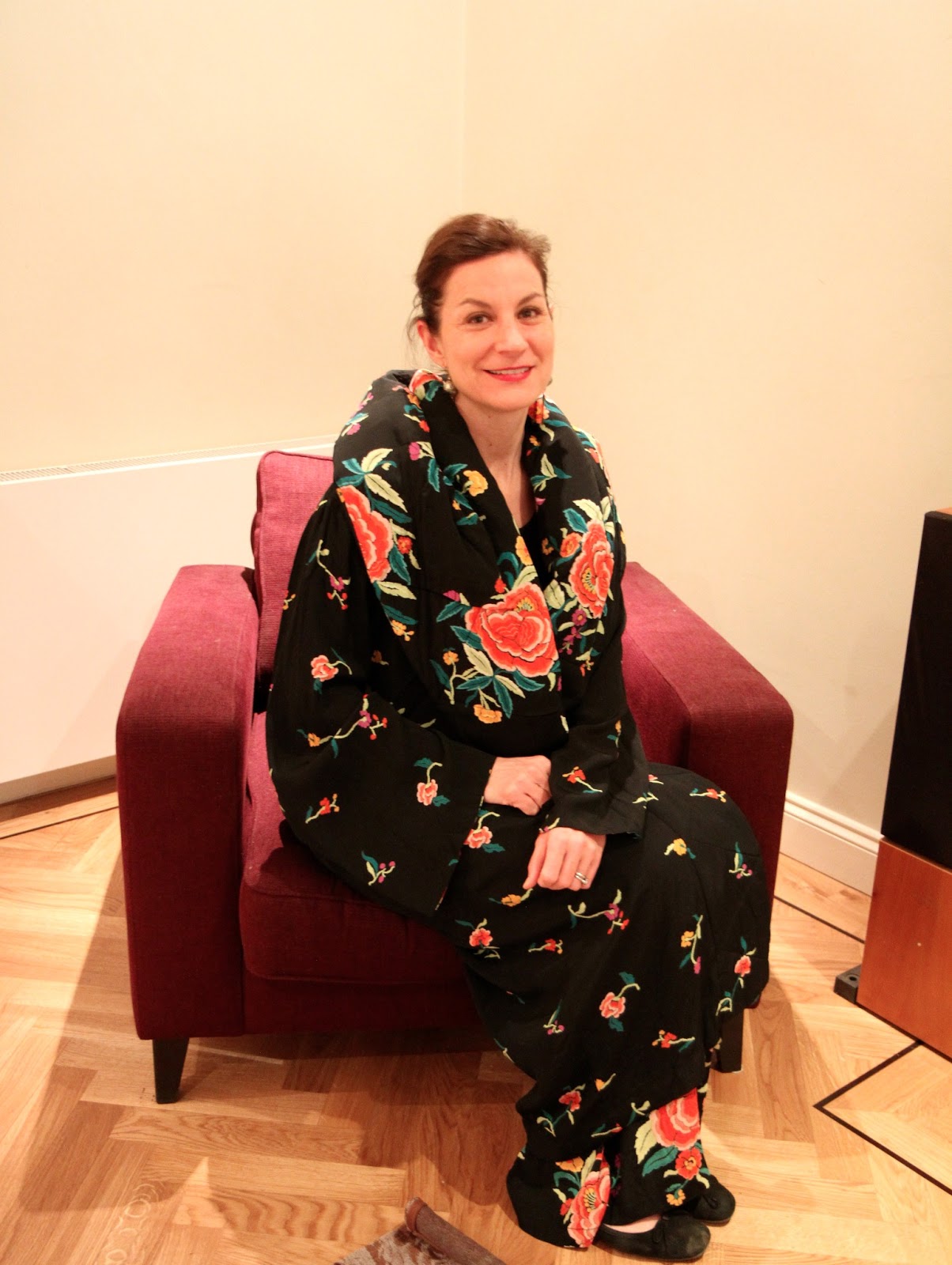 Sonnet wears Silver's dress, a 1985 Norma Camali. Out of the picture are her gold slippers.